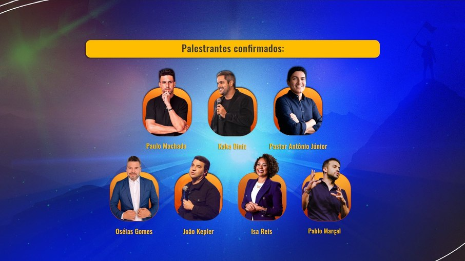 Juntamente com os coordenadores, entre os primeiros palestrantes confirmados estão personalidades relevantes nas esferas cristã e financeira, como Pastor Antônio Junior, Pastor Cláudio Duarte, Pablo Marçal, Kaka Diniz, Kaisser, Paulo Machado, Karina Bacchi, João Kepler, Oséias Gomes, Lamartine Possela, Isa Reis, André Fernandes, Elisângela Gomes e Padre Patrick.